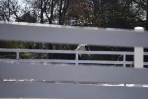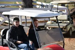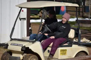 and Susan were loading the trailer. Kimberly did what she could with her foot tender post surgery. Cyndy and Melissa loaded the different horses’ special feed, etc. from the hay barn. Unfortunately, that left the door to the hay barn open. The goats, Oreo and Henry, and Hugo the pig smelled the food and decided to be a nuisance. After shooing them away ran its course and they decided to ignore it, Cyndy took it upon herself to try to solve the problem by sticking her tongue out and poking at them with a long broom. Hugo had already given up, picking whatever he could find in the dirt. The goats were simply confused by Cyndy’s actions and gave up.